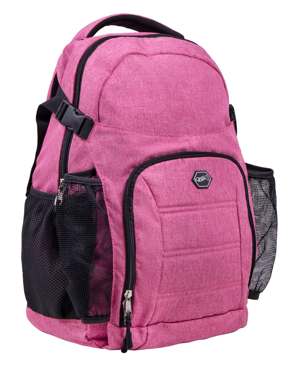 Practical backpack for rider or groom with a lot of storage space. A cap can be placed behind the front flap which has a zipper pocket. The sides feature mesh pockets which are easy for stuff you need to grab quickly.