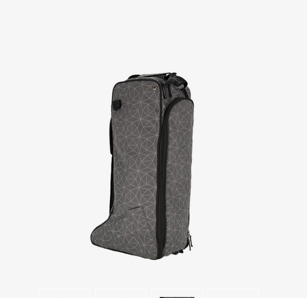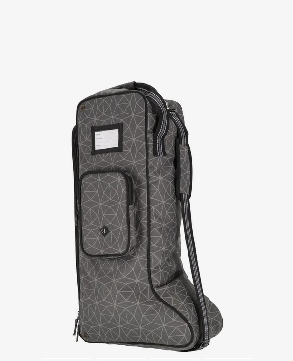 A boot bag that protects your boots well, made of water-repellent turnout fabric. This boot bag has ventilation holes to remove moisture and features a removable shoulder strap, carrying loops, a zipper pocket and a name pocket. Fabric composition: 100% polyester