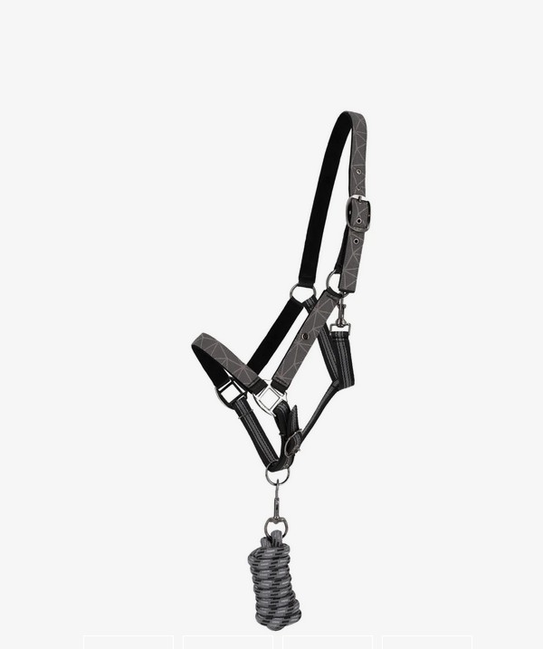 A padded head collar from the winter collection, decorated with beautiful colors. It features luxurious black metal fittings and comes with a matching colored lead rope and a reusable plastic bag with a zipper. Material head collar: 100% polypropylene